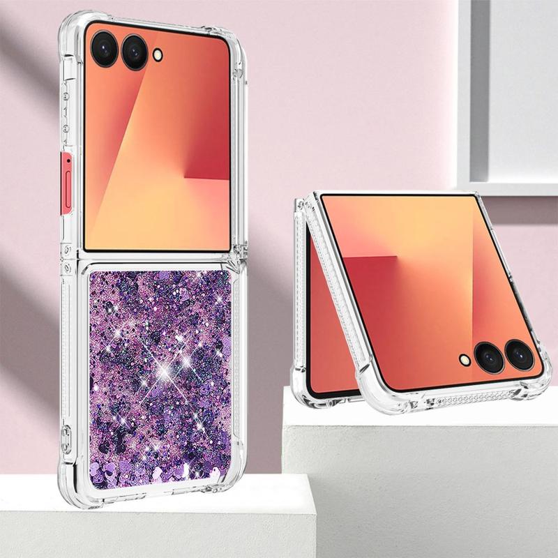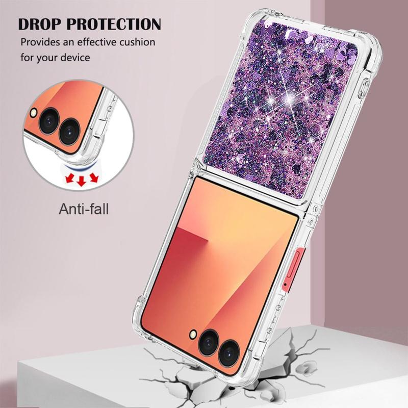 Turn every flip into a sparkle show. This ultra-slim TPU case for the Samsung Galaxy Z Flip7 combines fluid glitter hearts with shock-absorbing protection, wrapping your foldable in a fun, eye-catching layer that keeps scratches, drops and everyday scuffs at bay. Precise cut-outs leave hinges, speakers and USB-C ports fully accessible, while raised edges shield the camera lenses and outer display when you set the phone down.
