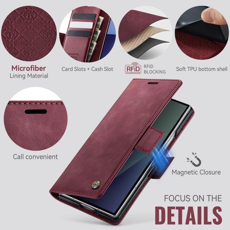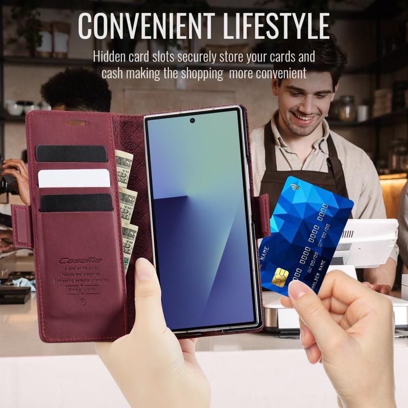The CASEME 033 Series Wallet Case for Samsung Galaxy Z Fold7 is crafted from calf texture polyurethane combined with TPU, offering full-body protection against scratches, impacts, and daily wear while maintaining a premium, elegant look.