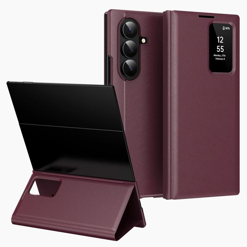 Samsung Galaxy Z TriFold Smart Clear View Flip Case with Card Slot - Wine Red