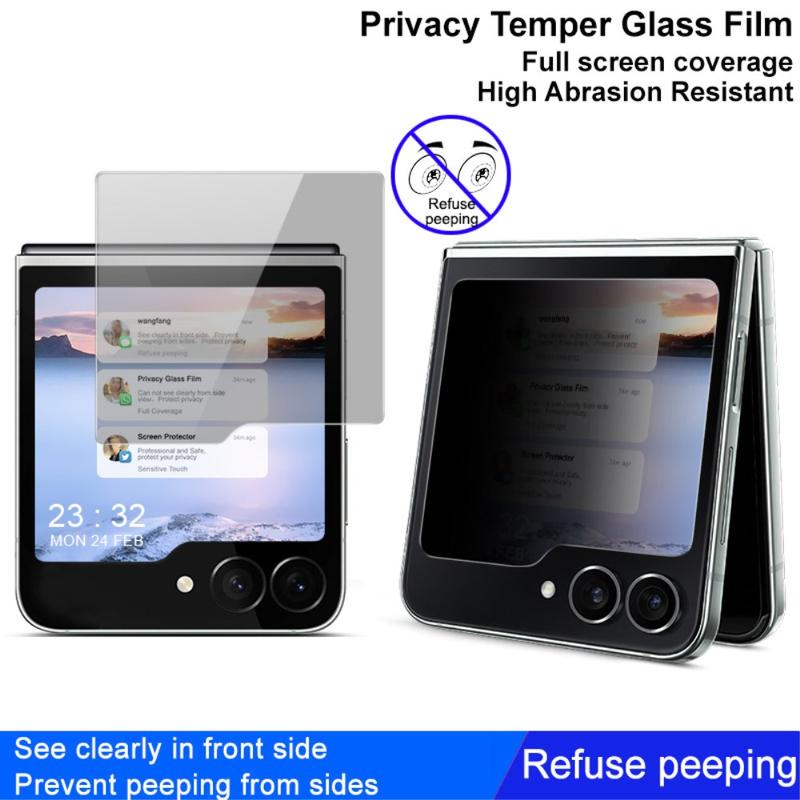 The Imak full cover privacy tempered glass offers a combination of privacy protection, screen clarity, touch sensitivity, and durability for your Samsung Galaxy Z Flip6, Galaxy Z Flip7 FE screen. A privacy filter prevents others from viewing your screen from side angles, which is useful when you're in public places. This screen protector also has a hardness rating of 9H, making it highly resistant to scratches and everyday wear and tear.