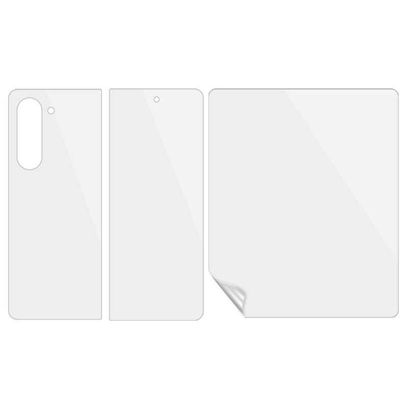 Completely transparent, it preserves screen color, brightness, and the original look of your Samsung Galaxy Z Fold5. Soft and flexible, the protection set will shield your Samsung Galaxy Z Fold5 from dirt, dust, impacts, and scratches.