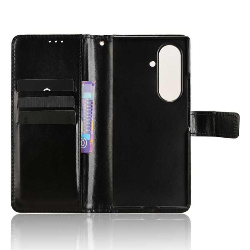 The “Crazy Horse” name comes from traditional equestrian saddlery; the textured surface is treated with waxes that create a two-tone, pull-up effect, mimicking full-grain leather while remaining animal-friendly, lighter and more scratch-resistant. That makes it ideal for daily-use phone accessories where both durability and style matter.