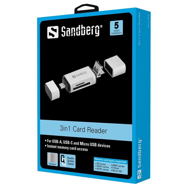 Sandberg SD / MicroSD Card Reader - USB-A / USB-C / MicroUSB