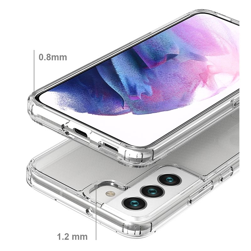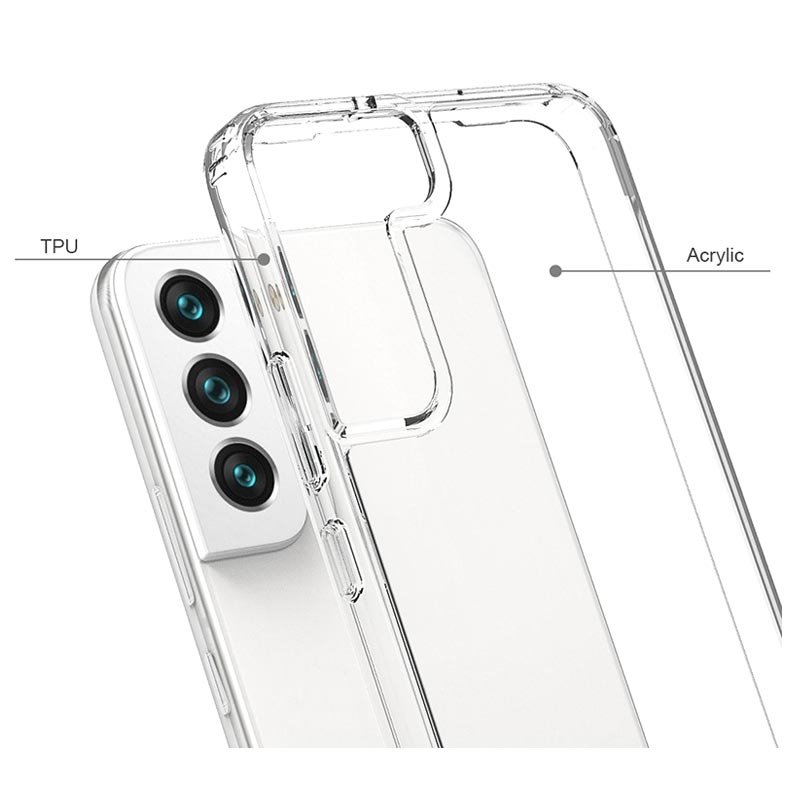 Thanks to its dual layer design that combines crystally clear acryl material and soft TPU edges, this ultra slim Samsung Galaxy S22 5G cover will prevent damage that might occur in everyday use. The cover is light, and feels great in your hand. Moulded yet easy-to-press buttons and cutout for ports allow easy operation of your smartphone, as if it had no cover on.