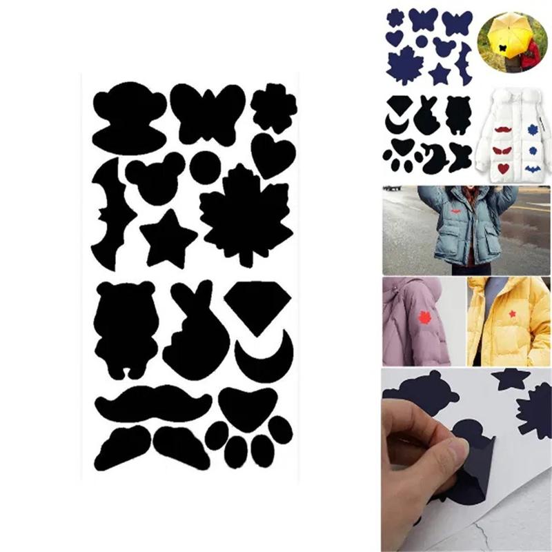 Fix rips in seconds—no needle, no heat press, no fuss. This peel-and-stick patch sheet carries multiple pre-cut shapes that bond instantly to nylon, polyester or down-proof fabrics, sealing leaks and tears on jackets, rainwear or camping gear with a flat, near-invisible finish that stands up to rain, washing and abrasion.