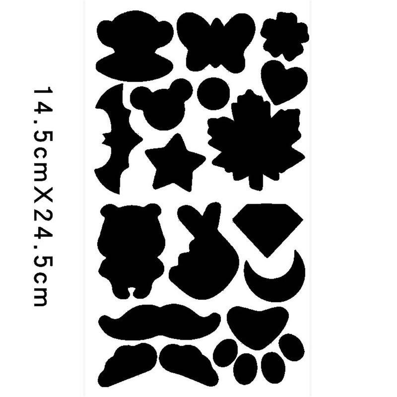 - Sheet size: 24.5 cm × 14.5 cm; assorted shapes ready to peel and press