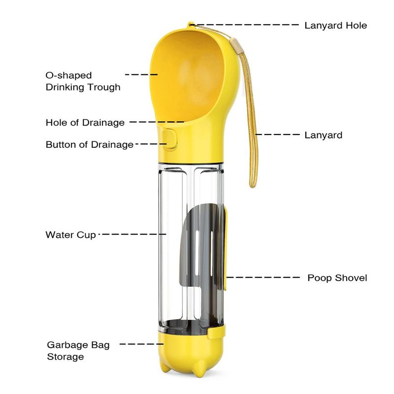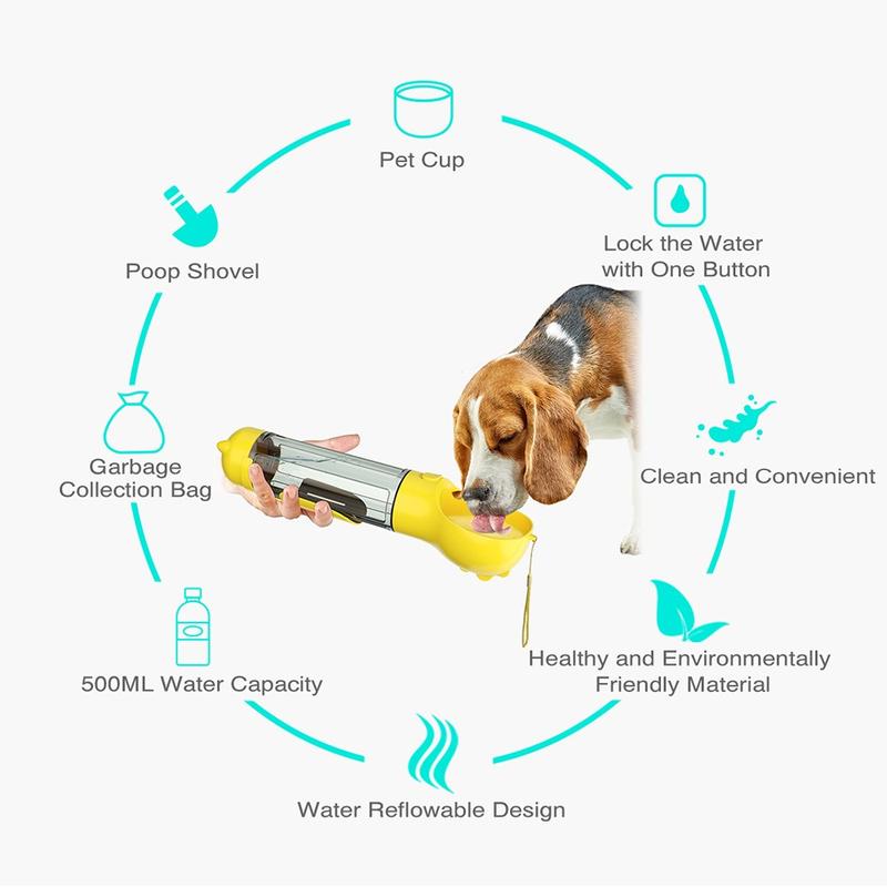 SH-01 Portable Multifunctional Dog Water Bottle with Poop Bag Dispenser – 500ml, BPA-Free