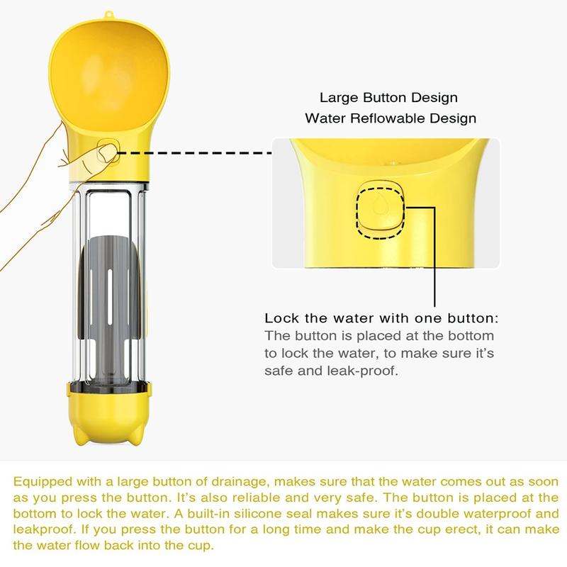 This versatile water bottle simplifies outdoor excursions with its dual functionality. The combination of a hydration system and poop bag dispenser makes it an essential accessory for dog owners. Its high-quality construction and user-friendly design ensure safety, convenience, and durability.