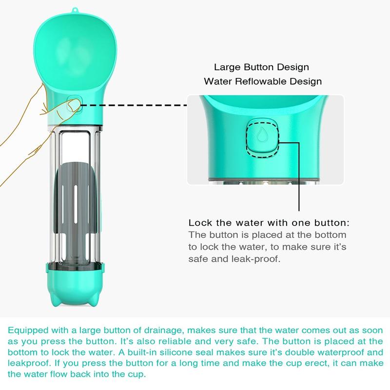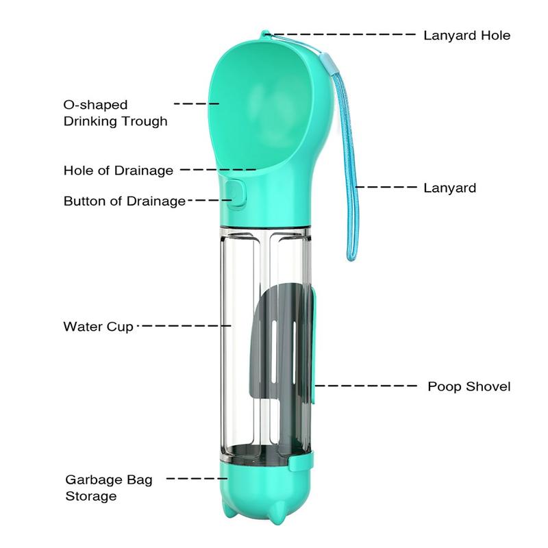 SH-01 Portable Multifunctional Dog Water Bottle with Poop Bag Dispenser – 500ml, BPA-Free