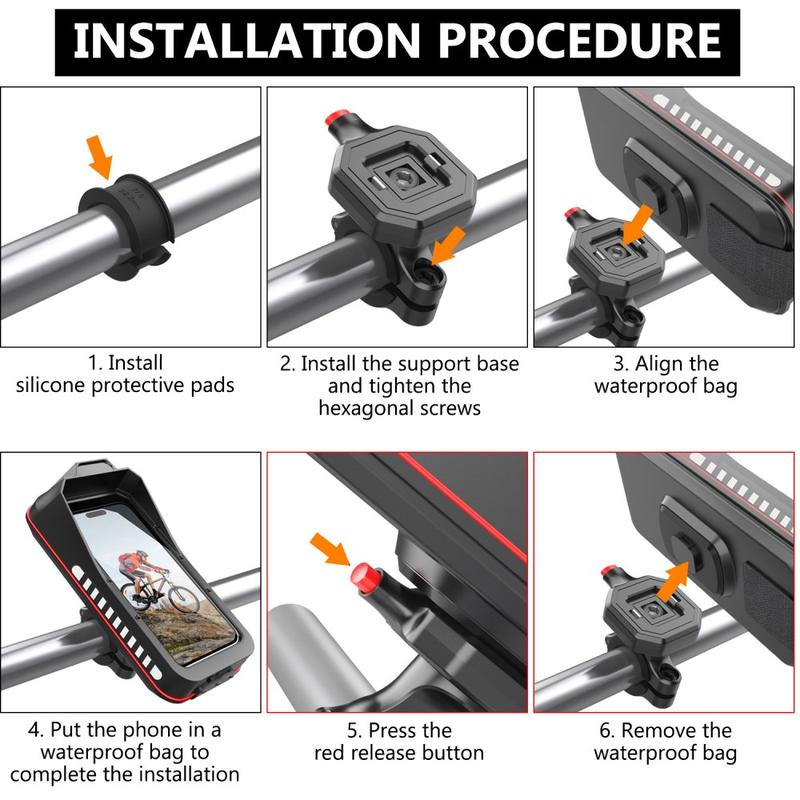 Keep your phone protected and easy to view while riding with the 07CE0004 Shockproof Waterproof Phone Mount. Designed for motorcycles, bicycles, e-bikes and scooters, this handlebar holder helps shield your smartphone from vibration, rain and splashes, making it ideal for navigation, delivery routes and everyday commuting. The stable handlebar mounting system includes multiple washers for a secure fit on different bar diameters.