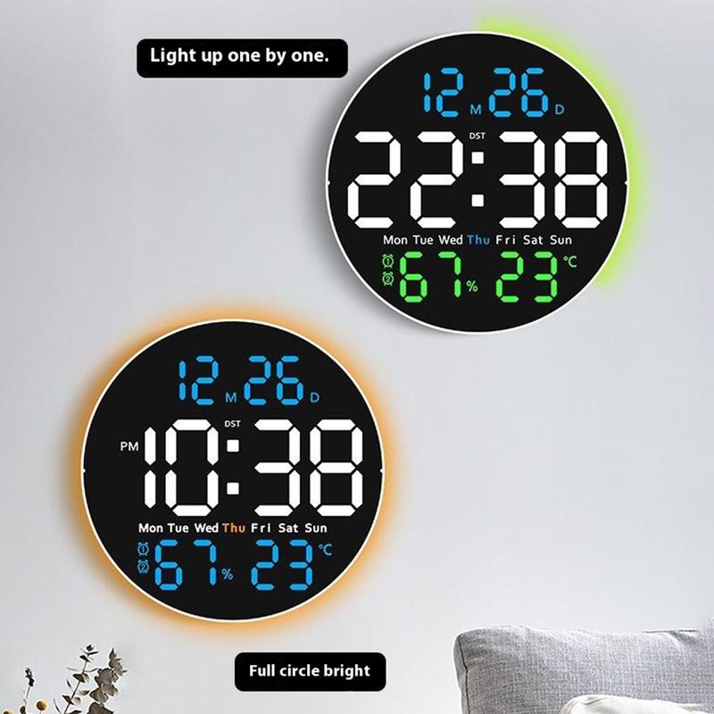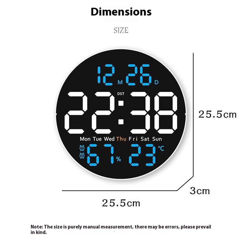 6672 Silent LED Wall Clock – 25.5cm Temperature and Humidity Display with Ambient Night-Light & Remote Control
