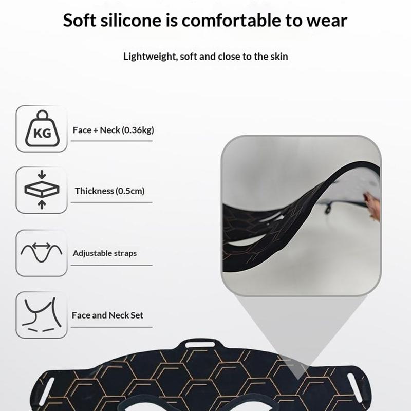 Silicone Facial Beauty Device / LED Light Therapy Face and Neck Mask - Black