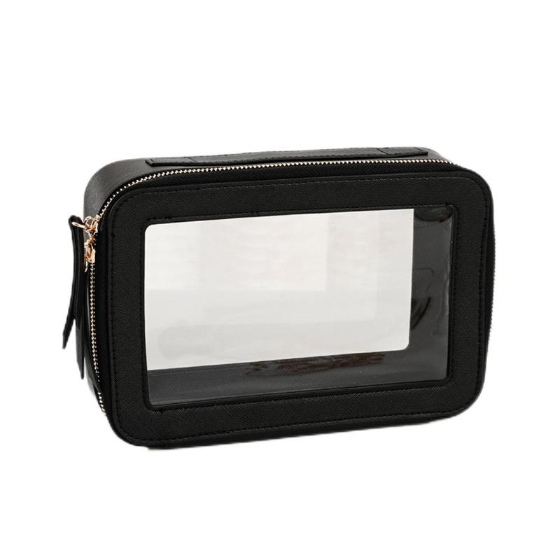 Single Layer Transparent Makeup Bag Waterproof PU Leather Cosmetic Bag - Black