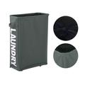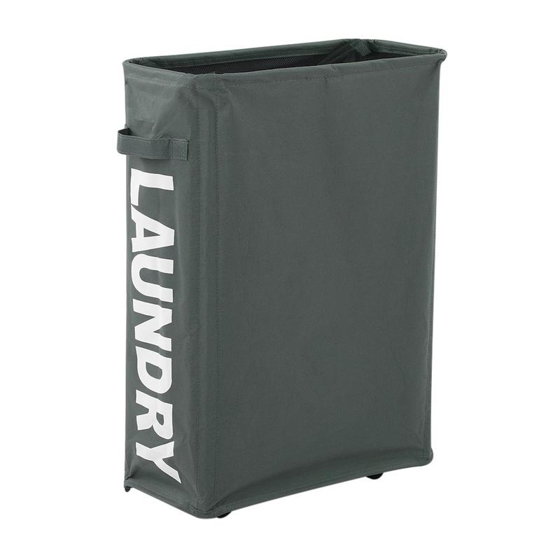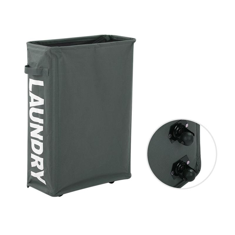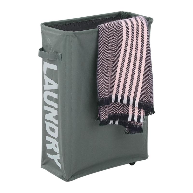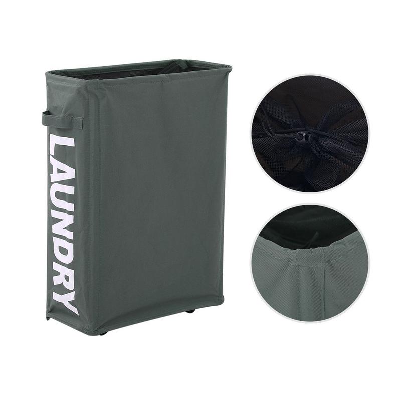 Slim Foldable Oxford Laundry Basket with Wheels & Mesh Drawstring Lid - Grey