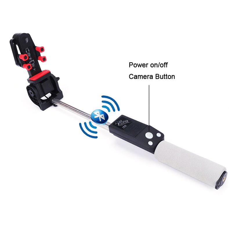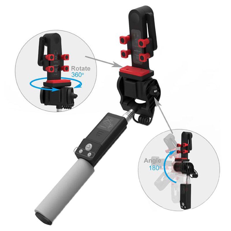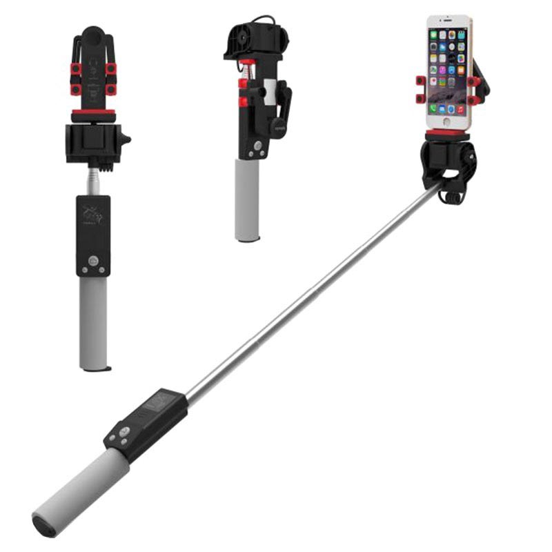 - Extendable selfie stick with a wireless Bluetooth 4.0 remote and 360-degree rotation