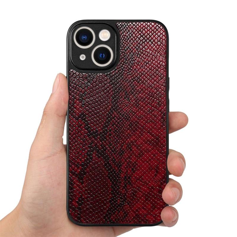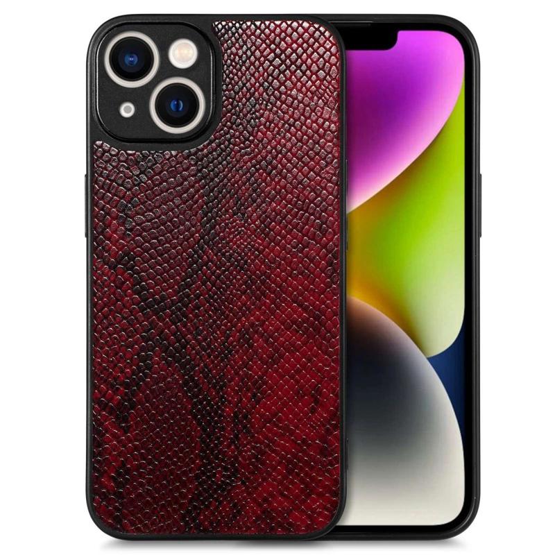 For iPhone 14 Shockproof Precise Cutout Phone Case Snake Texture PU Leather Coated TPU Back Cover