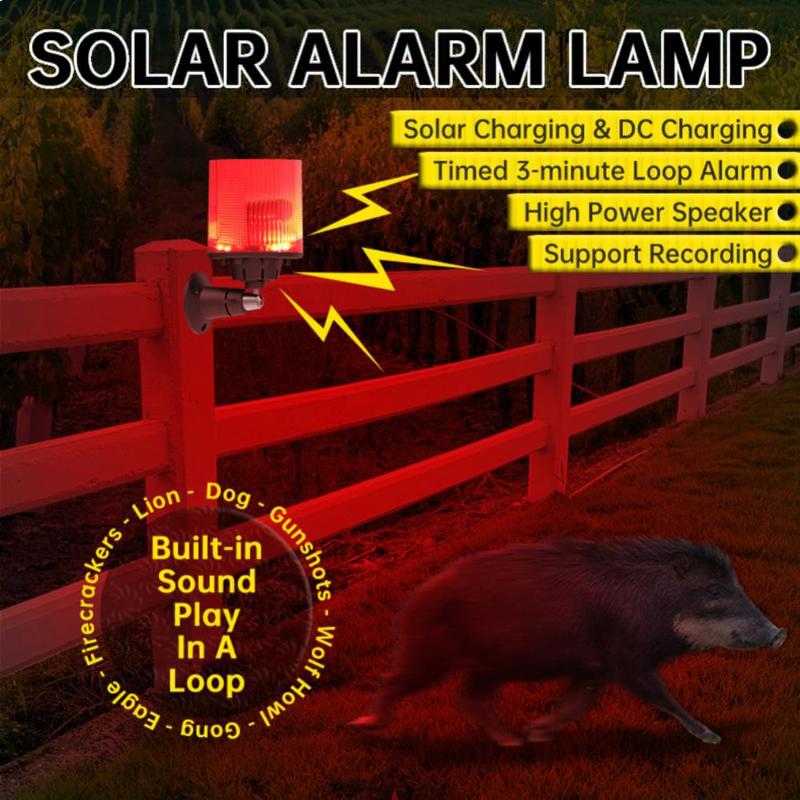 Solar-Powered Alarm Light N911L - 129dB Animal & Intruder Repeller with Recording, IP55, Solar + USB Recharge