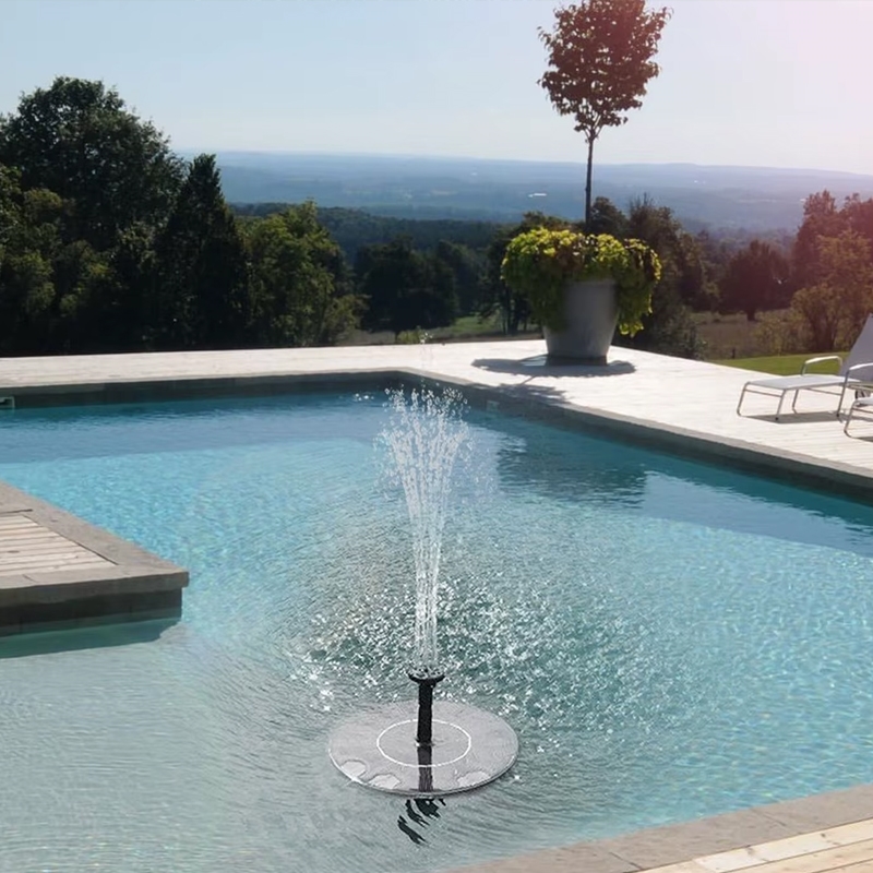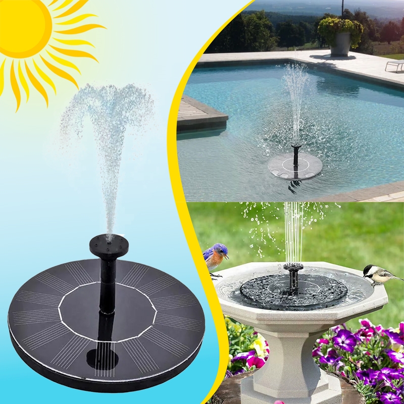 - Solar-powered floating fountain pump with four spray nozzles to decorate your garden