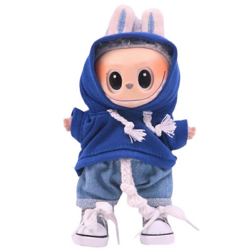 • Solid-Color Hoodie for 17cm Labubu Mini Figure - Soft Cotton-Blend Hooded Top, Easy-Dress Design