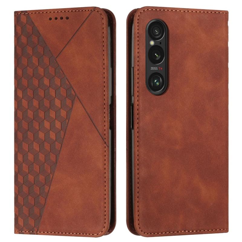 Sony Xperia 1 VI Rhombus Pattern Wallet Case with Magnetic Closure - Brown