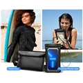 This Spigen A621 waterproof set includes a unisex waterproof waist bag with an adjustable strap and a waterproof floating case for smartphones up to 6.9". The Spigen waist bag features a secure lock system and is made of scratch-resistant material, providing excellent protection against water. The smartphone case included in the set has a floating design, making it easy to locate if lost. It is also transparent on both the front and back, allowing you to take underwater photos.