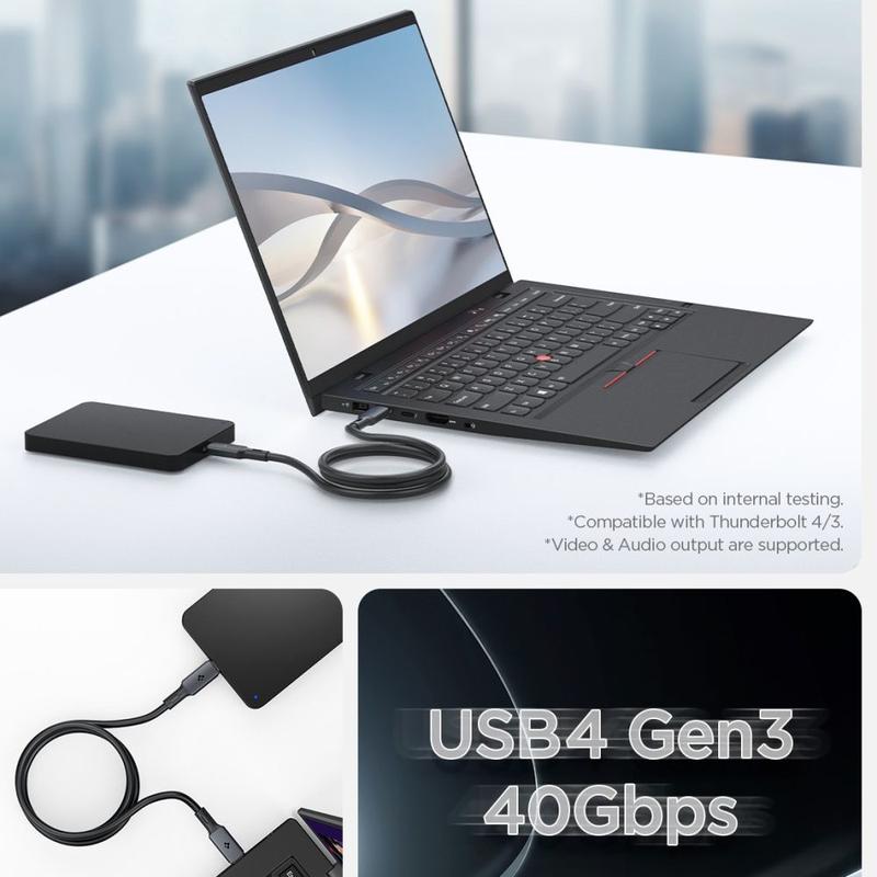 Experience exceptional charging and data transfer capabilities with the Spigen ArcWire USB-C to USB-C Cable (PB2203). Engineered for modern devices, this cable supports up to 240W power delivery and USB4 Gen3 speeds of up to 40Gbps. Its durable design ensures long-lasting performance, making it the ideal accessory for your tech arsenal. Compatible with laptops, tablets, smartphones, and more, this cable is perfect for users who demand speed, reliability, and convenience.