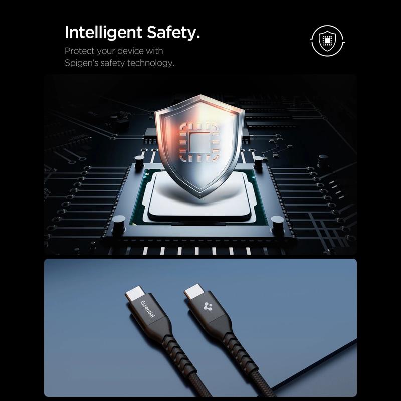 Built for long-term use, the cable uses Spigen s Dura Bend design to improve flexibility and resistance to repeated bending. Reinforced ends help protect the most vulnerable areas from daily wear, while the certified E-Marker chip helps manage power safely by recognizing the connected device and adjusting charging parameters accordingly. This helps support stable charging and adds protection against overheating, overcharging, and short circuits.