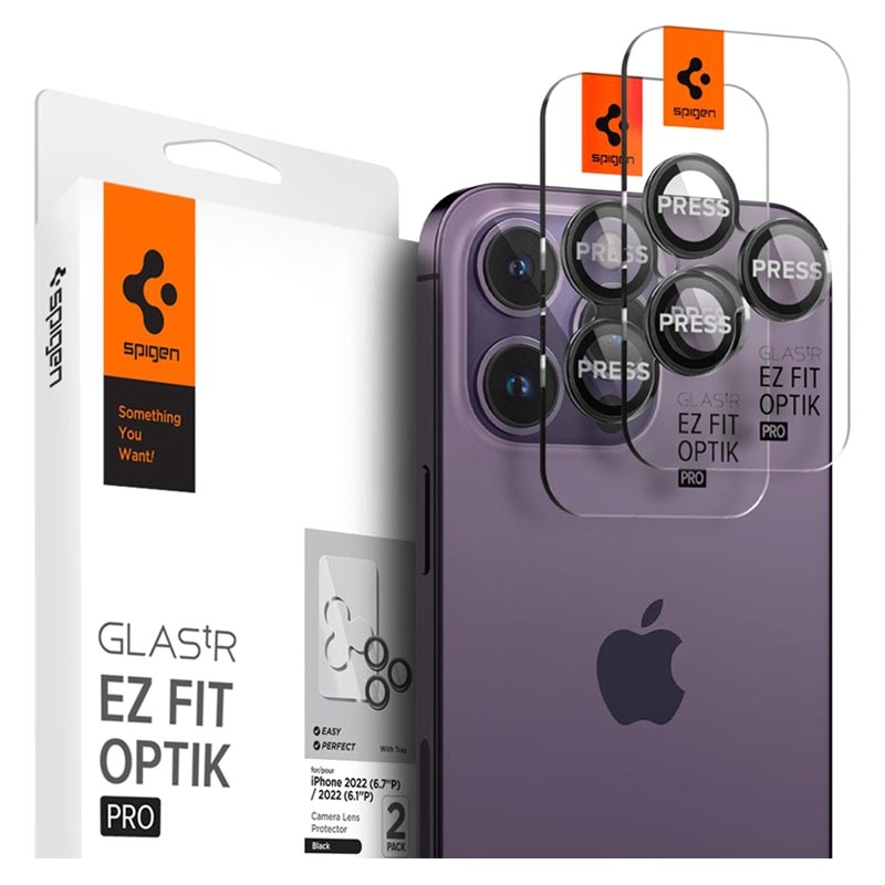 - Spigen Glas.tR Ez Fit Optik Pro lens protector for iPhone 14 Pro, iPhone 14 Pro Max, iPhone 15 Pro, iPhone 15 Pro Max, iPhone 16 Pro, iPhone 16 Pro Max, iPhone 17 Pro, iPhone 17 Pro Max