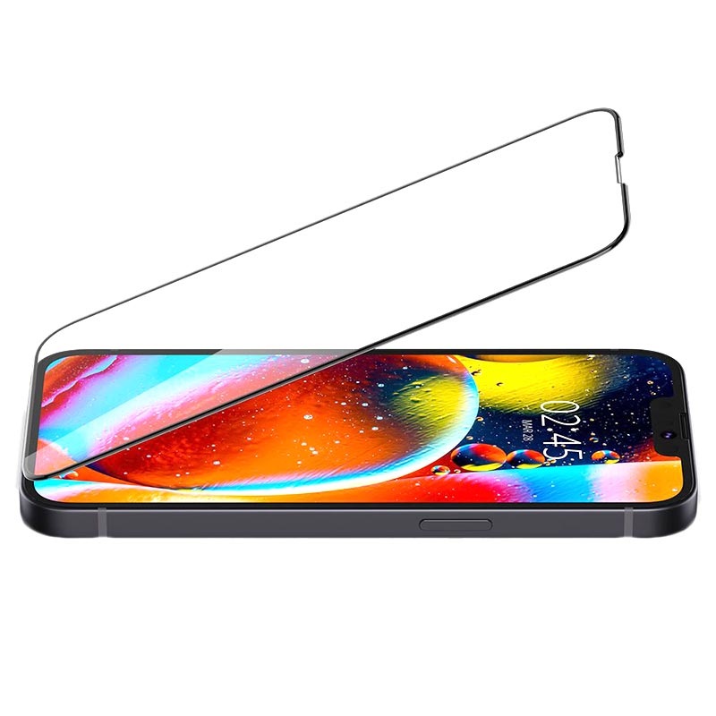 The 0,3mm thick tempered glass boasts the industry-standard 9H hardness, so it's resistant to scratches by keys, coins, and other items in your purse or pockets. Upon that, the oleophobic surface and smooth 2.5D edges ensure easy maintenance and comfort when holding your iPhone 13, iPhone 13 Pro, iPhone 14, iPhone 16e.