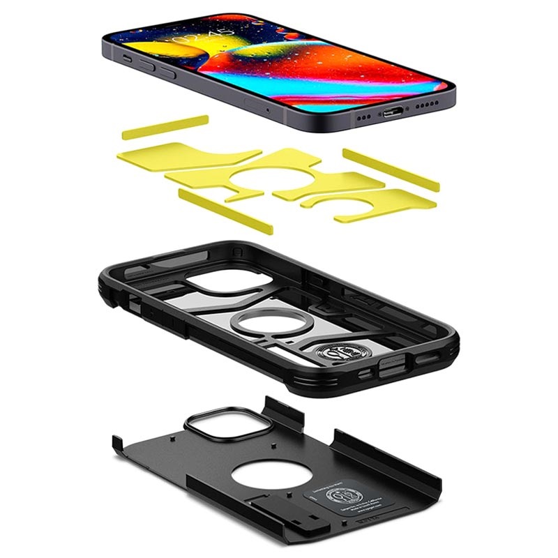 Fantastic viewing experience with a built-in kickstand allows you to easily watch your favorite show on your iPhone 13 without holding it constantly. Double layered TPU and a hard polycarbonate case, covers for buttons and cutouts for ports, and raised edges that keep the camera and screen scratch-free, the Tough Armor series has the protection you can trust! iPhone 13 Case also has a raised lip that helps you to prevent scratches and other damage when you place your phone face down on a flat surface.