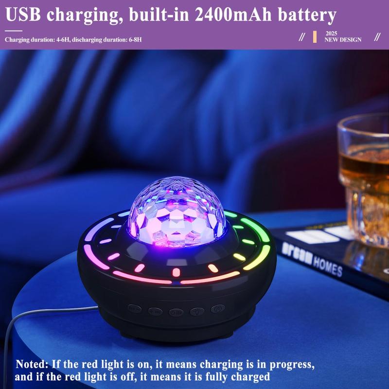 - Long-lasting power - 2 400 mAh 18650 cell recharges via USB-C in 4-6 h and runs 5-8 h (projection + RGB + speaker).