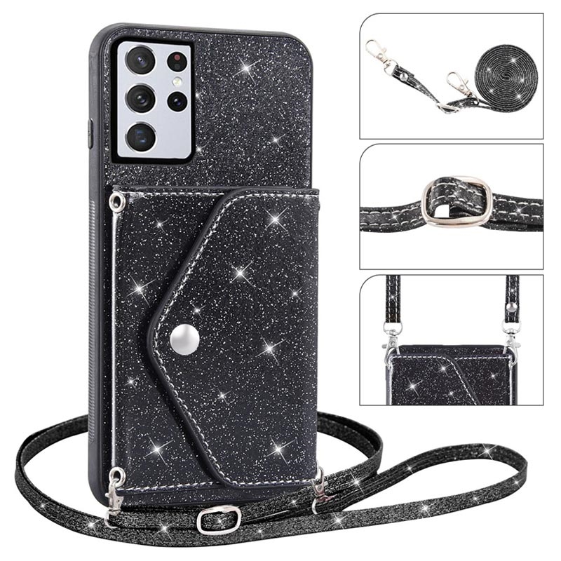 The Stardust Series case is stylish, versatile, and protective enough to keep your Samsung Galaxy S23 Ultra 5G in pristine condition. The card holder on the back has enough pockets to keep your ID or credit cards within easy reach. Also, it comes with an adjustable strap that allows you to wear the case crossbody, or as a shoulder bag. This case for Samsung Galaxy S23 Ultra 5G is made of flexible, shock-absorbing TPU and coated with glittery polyurethane.