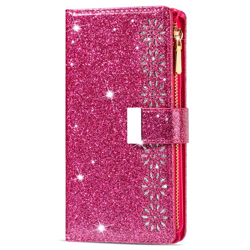The most elegant way to carry your Samsung Galaxy S22 5G is shielded with this sparkling wallet case. It provides excellent all-around protection, while the strong magnetic closure keeps all your valuables and your Samsung Galaxy S22 5G secured. The case features multiple card slots and a large zipper pocket, while the foldable back doubles as a stand for convenient media watching. This stylish wallet case for Samsung Galaxy S22 5G comes with a handy lanyard for extra safety in crowded places.
