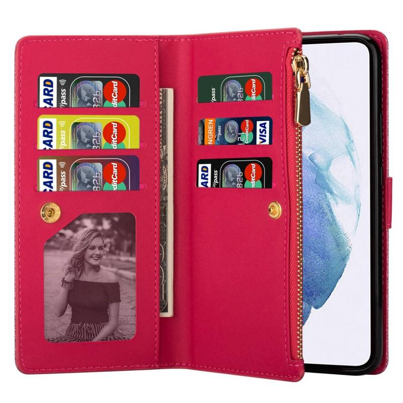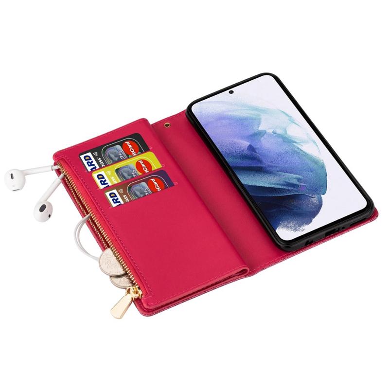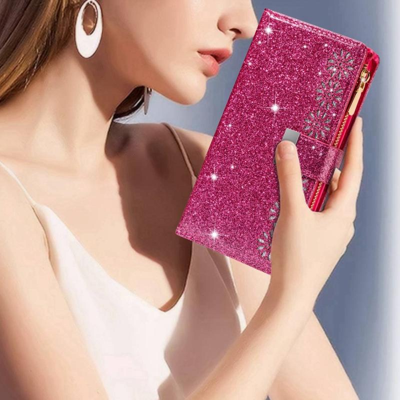 The most elegant way to carry your Samsung Galaxy S23 Ultra 5G is shielded with this sparkling wallet case. It provides excellent all-around protection, while the strong magnetic closure keeps all your valuables and your Samsung Galaxy S23 Ultra 5G secured. The case features multiple card slots and a large zipper pocket, while the foldable back doubles as a stand for convenient media watching. This stylish wallet case for Samsung Galaxy S23 Ultra 5G comes with a handy lanyard for extra safety in crowded places.