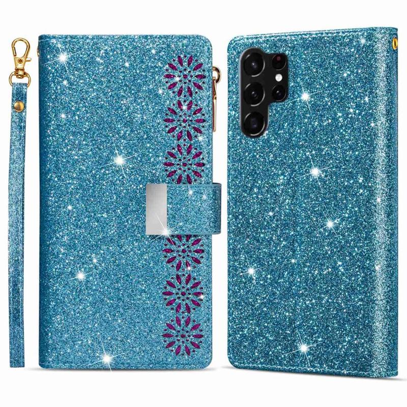 The most elegant way to carry your Samsung Galaxy S23 Ultra 5G is shielded with this sparkling wallet case. It provides excellent all-around protection, while the strong magnetic closure keeps all your valuables and your Samsung Galaxy S23 Ultra 5G secured. The case features multiple card slots and a large zipper pocket, while the foldable back doubles as a stand for convenient media watching. This stylish wallet case for Samsung Galaxy S23 Ultra 5G comes with a handy lanyard for extra safety in crowded places.