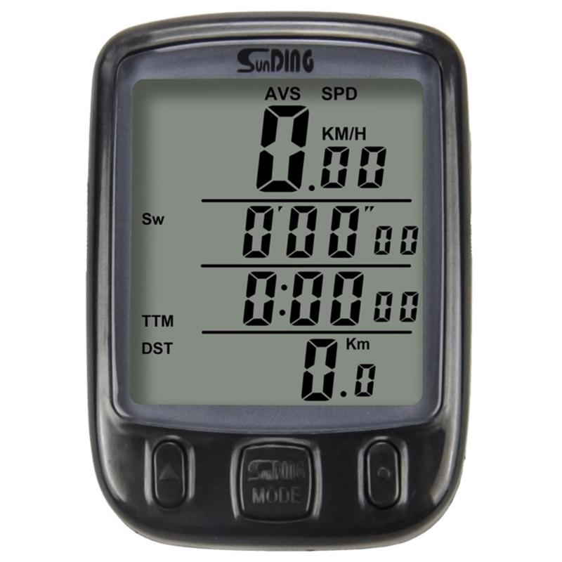 Sunding Water-resistant Wired Bike Computer - LCD Back-Light Odometer & Speedometer with Timer, 2-Language Display