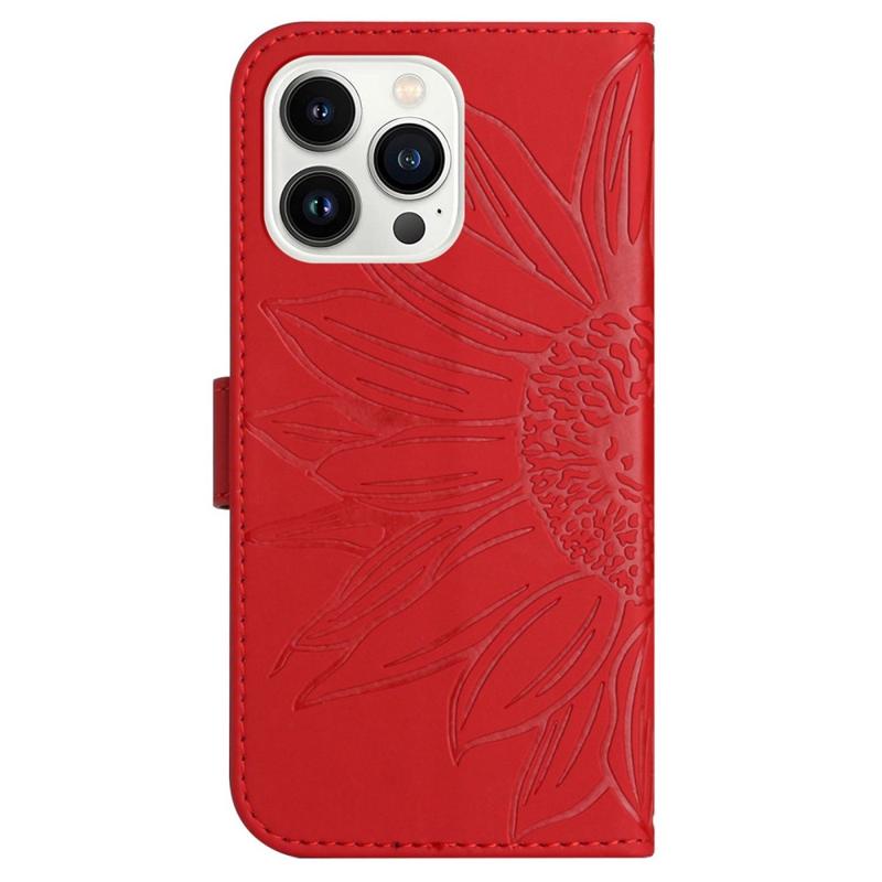 Bump Proof Flip Phone Case for iPhone 14 Pro Max, HT04 Imprinted Sunflower Stand PU Leather Skin-Touch Magnetic Wallet Cover with Strap