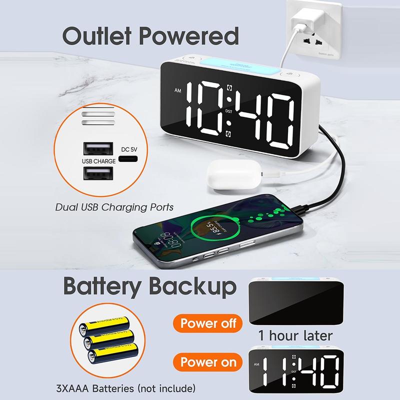 - Additional Features: Includes a 9-minute snooze function, 12/24-hour time format, Daylight Saving Time adjustment, and two DC 5V/1A USB output ports for safely charging your devices bedside.