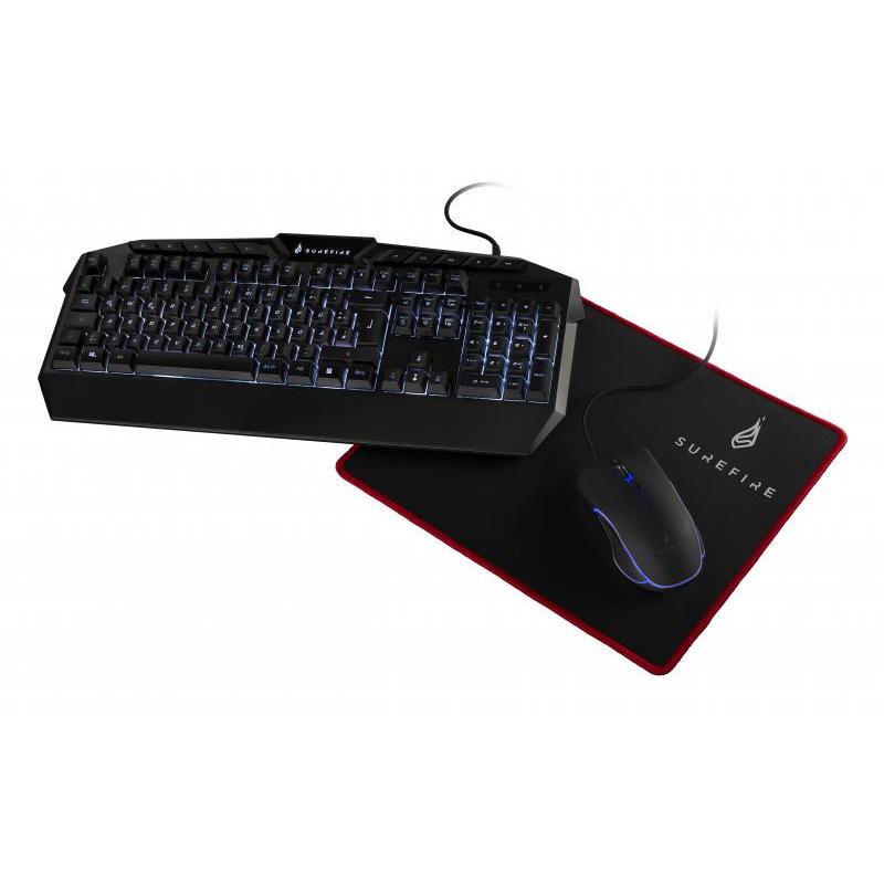 SureFire Kingpin Gaming Combo 48825-482 - RGB Multimedia Keyboard, 7-Button Gaming Mouse, Gaming Mousepad - QWERTZ - German Layout