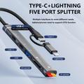 SVT02 For iPhone+Type-C Hub Adapter to 2 Type-C Ports+USB+2 Card Reader Slots - Grey