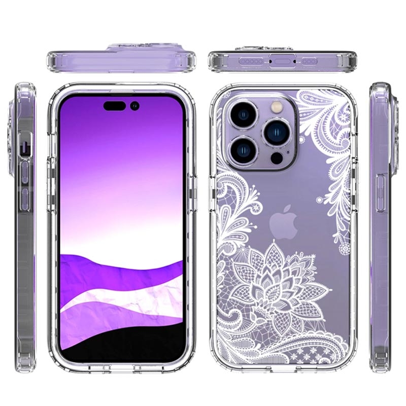 Protect your iPhone 14 Pro and make it look prettier with this high-quality Sweet Armor hybrid case. The case is made of two pieces - it has a back cover made of TPU, while the frame is made of sturdy plastic that enhances protection and brings it to another level. The transparent design lets the original beauty of your iPhone 14 Pro shine through, while the beautiful pattern makes it look trendy.