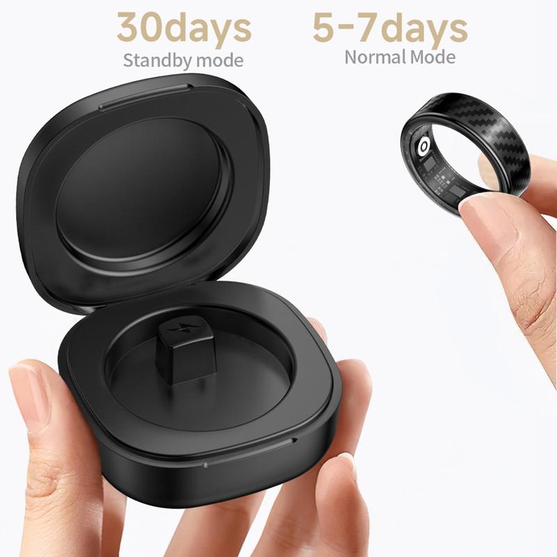 SY02 Carbon Fiber-Pattern Smart Ring - Sleep, Blood Oxygen & Heart-Rate Tracker with Wireless Charging Case