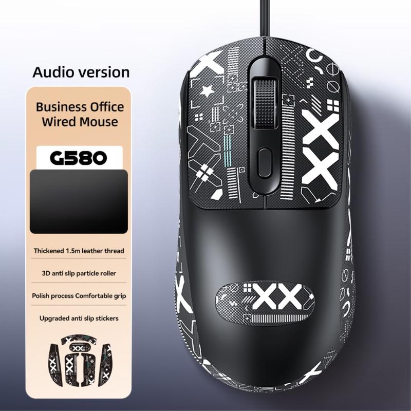 T-WOLF G580 Ergonomic Design Office Wired Mouse Anti-Slip Sticker