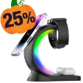 T17 3-in-1 RGB Light Magnetic Wireless Charger for iPhone 12/13/14/15/16/17/Air Series Desktop Fast Charging Stand Compatible with MagSafe - Black
