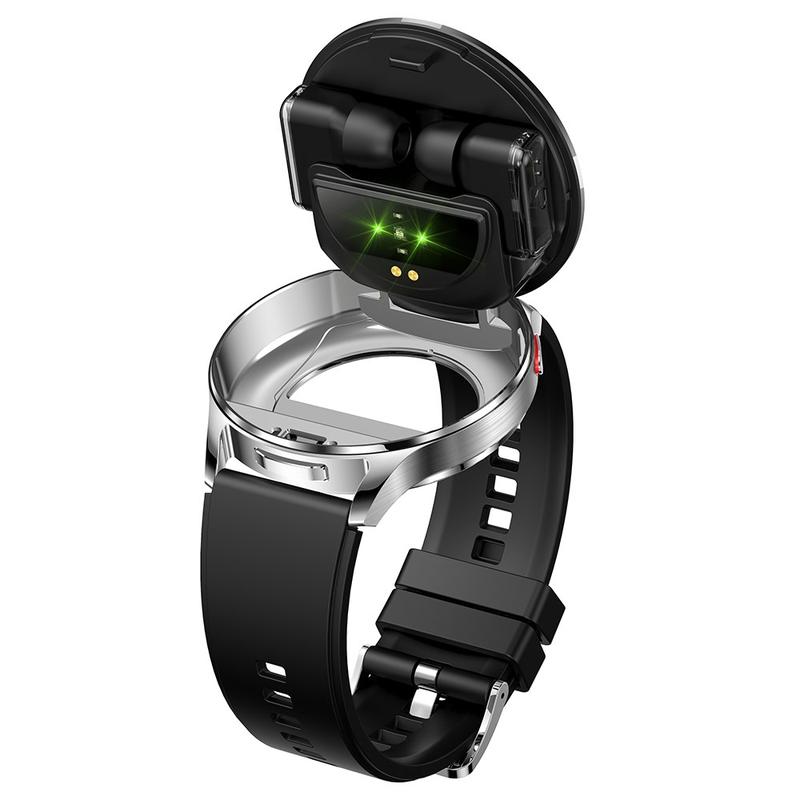 Enjoy hands free calls, immersive music and round the clock health tracking in one compact device. The T97 pairs a high resolution 1.39 inch display with pop out Bluetooth earbuds that recharge inside the watch, giving you true all in one convenience for work, workouts and travel.