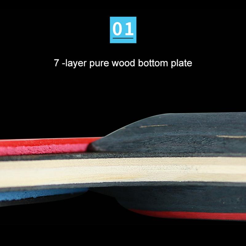 It combines a solid 7-layer solid wood bottom plate for increased ball control and added spin