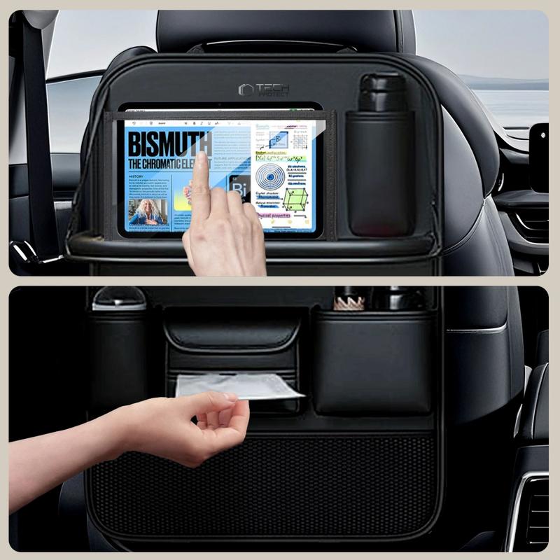 Tech-Protect UCA100 Back-Seat Car Organiser - 59 x 43cm Multi-Pocket Storage with Folding Laptop/Tablet Tray