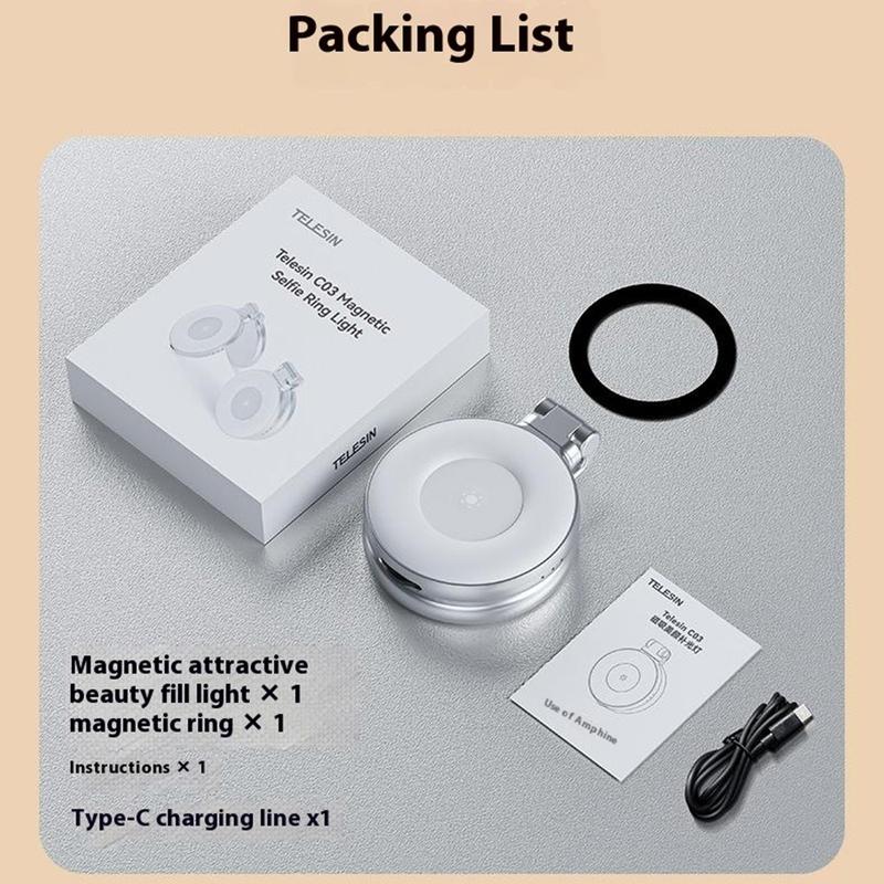 TELESIN S5-BGD-01 Magnetic Beauty Fill-Light & Selfie Mirror – 360° Rotatable Pocket LED for iPhone12-16 & MagSafe Cases