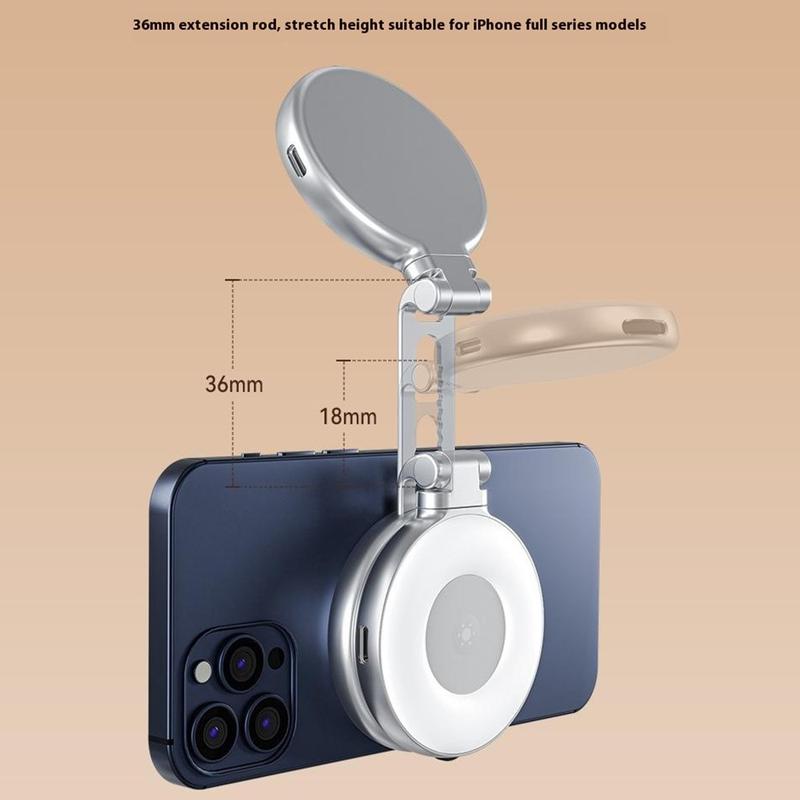 Turn any moment into a flawless portrait. The TELESIN S5-BGD-01 combines a high-CRI LED panel, 360° swivel arm, MagSafe-ready mount and 56mm HD make-up mirror in one palm-sized accessory. Snap it magnetically to an iPhone 12-16 or slip the metal ring under any phone case, then tilt, rotate and extend the 36mm rod to bathe your face in studio-grade light—perfect for selfies, vlogs or late-night video calls across Europe.