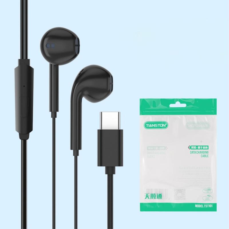 TIANSTON E50 Type-C Wired Earphone Digital Decoding Wire Control Music Headset - Black